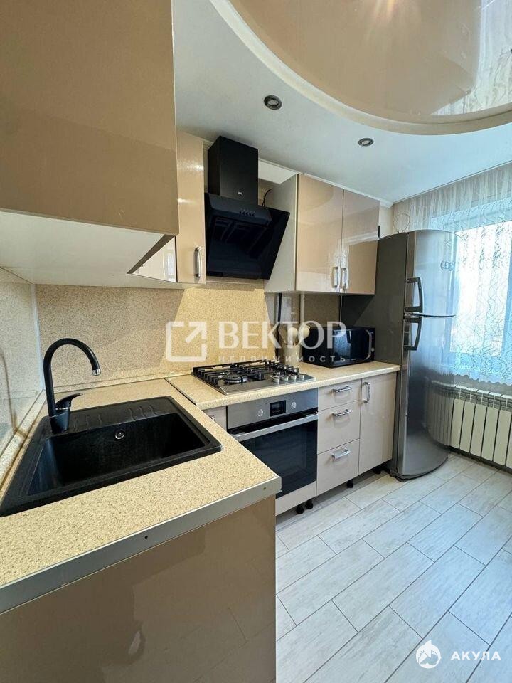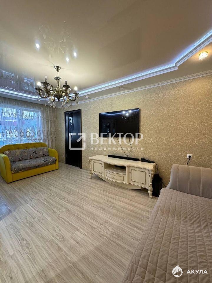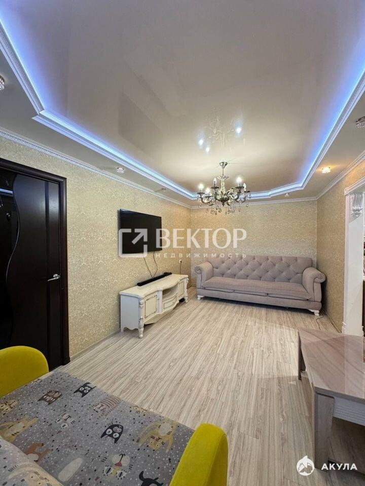Кухня площадью 7 м² оборудована современной техникой и стильной мебелью. В квартире выполнен качественный ремонт, стены украшены декоративными обоями, а потолки оформлены изысканными светильниками. В гостиной установлен удобный диван и телевизор, создавая атмосферу уюта и комфорта.