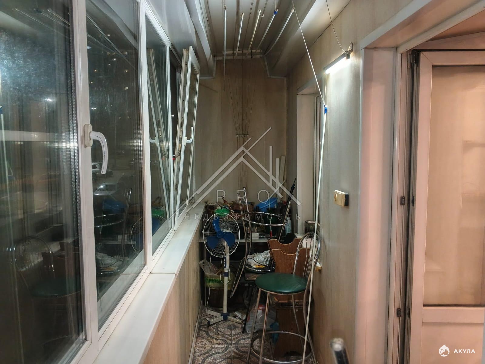 На лоджии есть небольшая кладовка, где можно удобно разместить хозяйственные принадлежности.