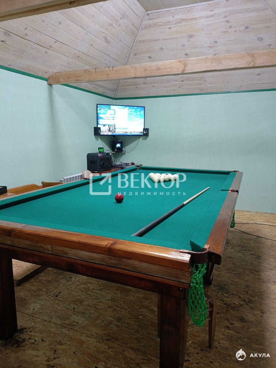 Для отдыха и развлечений предусмотрена беседка размером 4 х 6 м с отоплением от котла и русским бильярдом на 9 футов. На участке расположены две теплицы (3 х 8 м), есть декоративные и плодово-ягодные насаждения, а часть земли используется под огород.