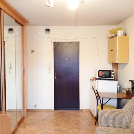 Теплая, светлая, уютная комната в тихом семейном общежитии! В помещении выделена зона кухни 5 м2 с обеденным столом и мини гарнитуром, жилая зона 10 м2 с диваном и стенкой и зона гардеробной. В комнате есть холодильник и микроволновая печь (на фото отсутствуют). Стиральная...