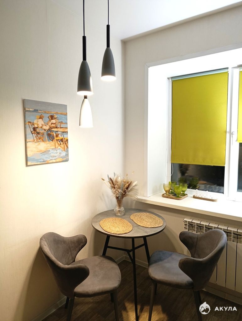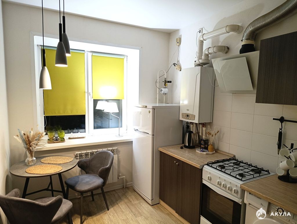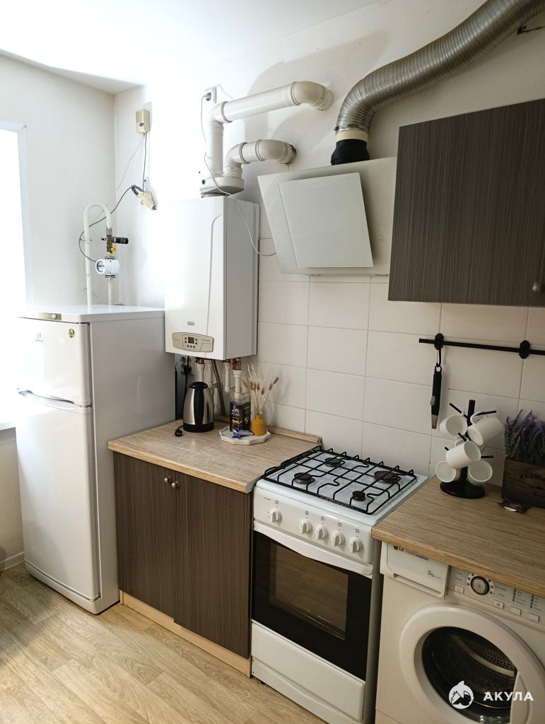В квартире сделан косметический ремонт. Квартира оборудована современной мебелью и техникой. Из спальных мест в квартире имеется двухспальный раскладной диван. Из техники в квартире есть: холодильник, газовая плита, вытяжка, стиральная машина, электрический чайник.