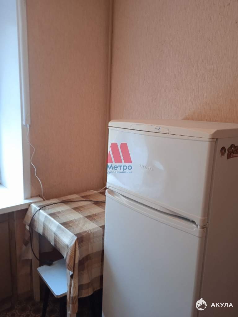 На кухне гарнитур, холодильник. В комнате 2 спальных места, шкаф, стол, стул компьютерный, стол-книжка. Мебель не новая, но всё необходимое для проживания есть.