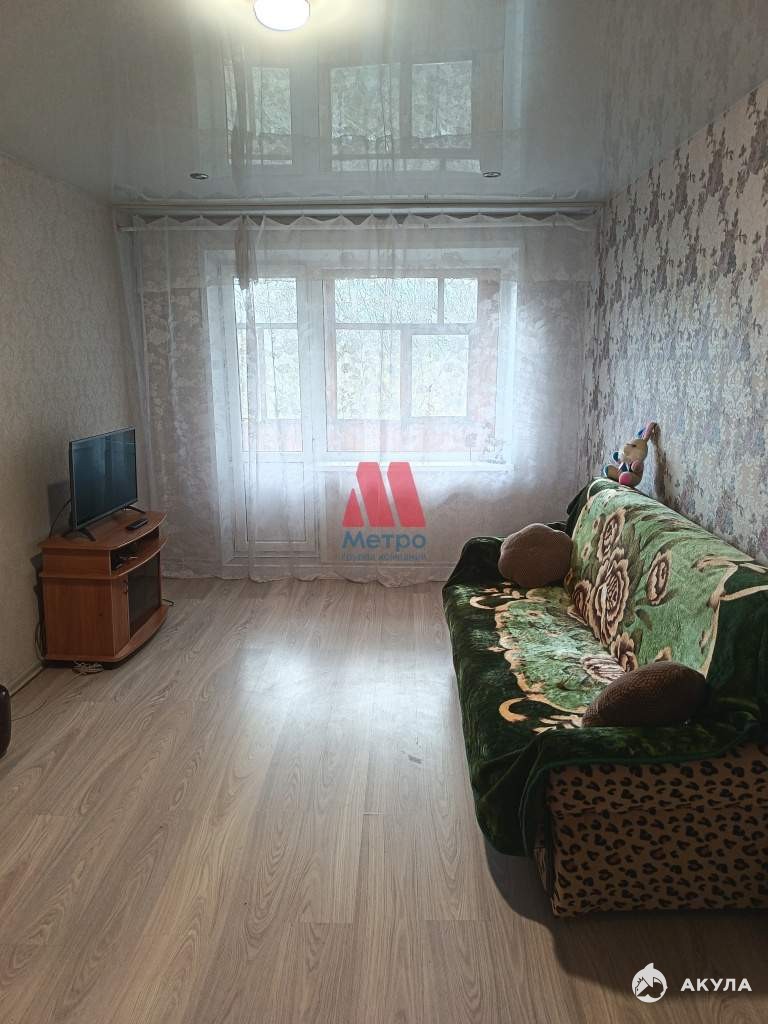 В комнате диван ( раскладывается ) , тумба, телевизор, в коридоре шкаф гардеробный.