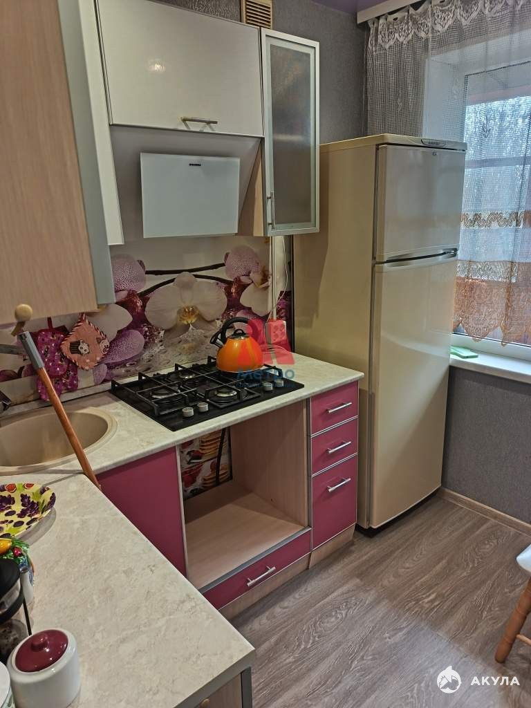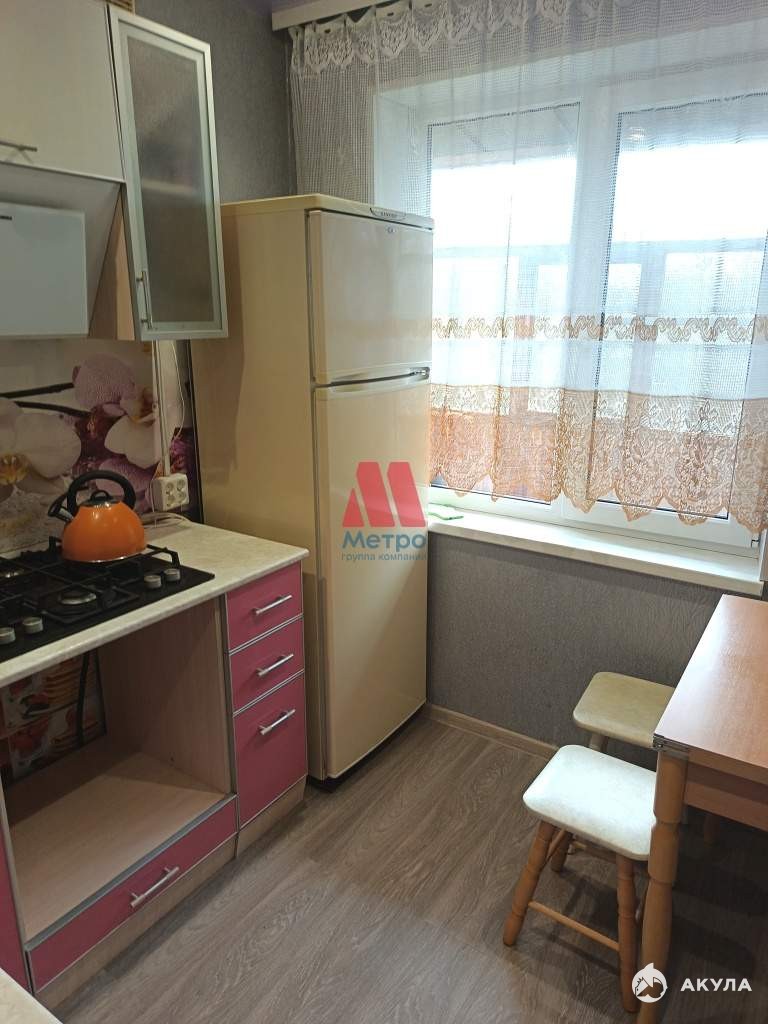 В квартире есть все необходимое для проживания: на кухне гарнитур, стол, стулья, Холодильник.