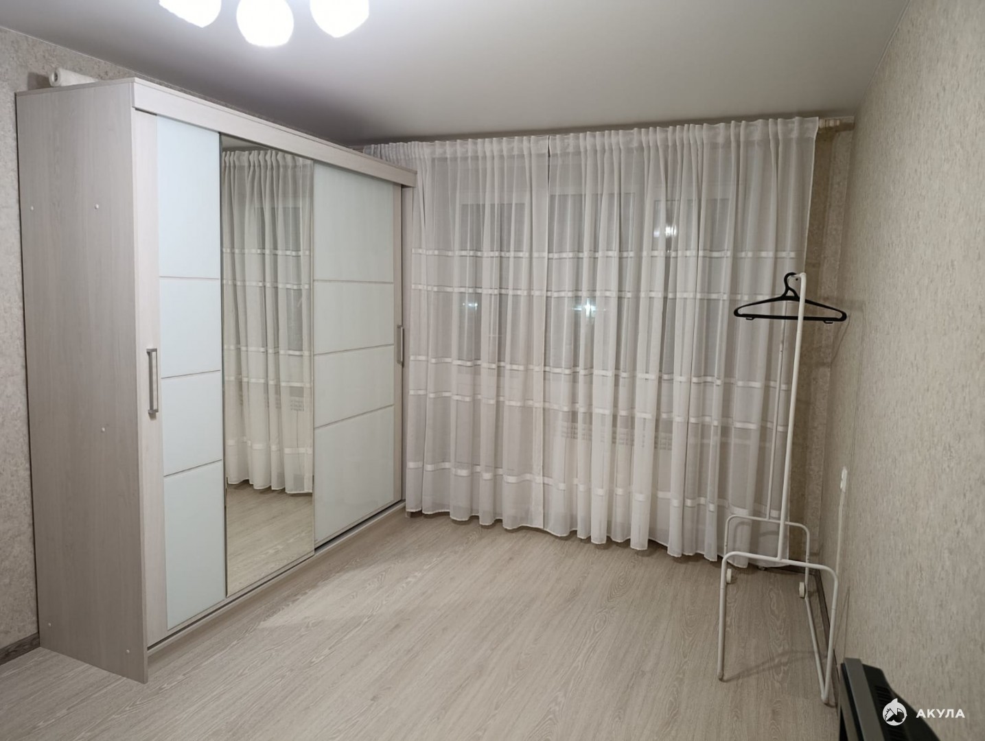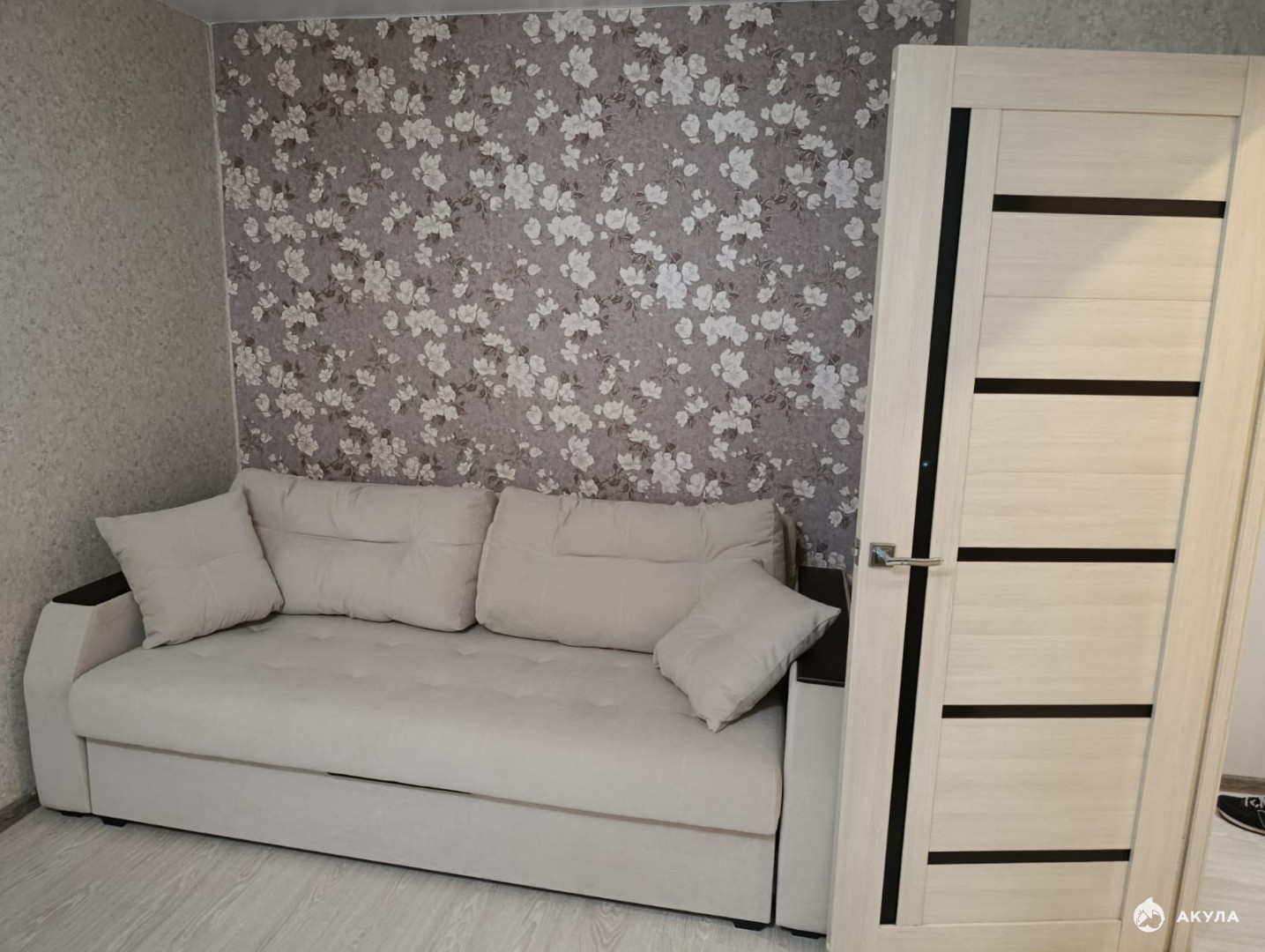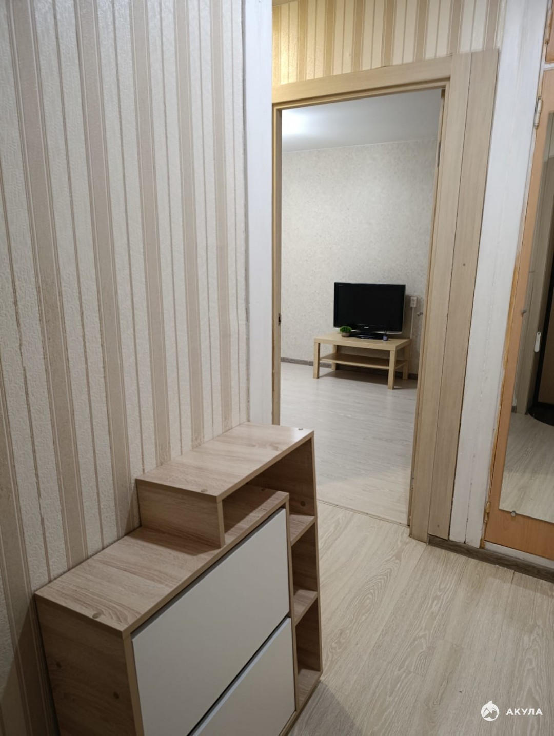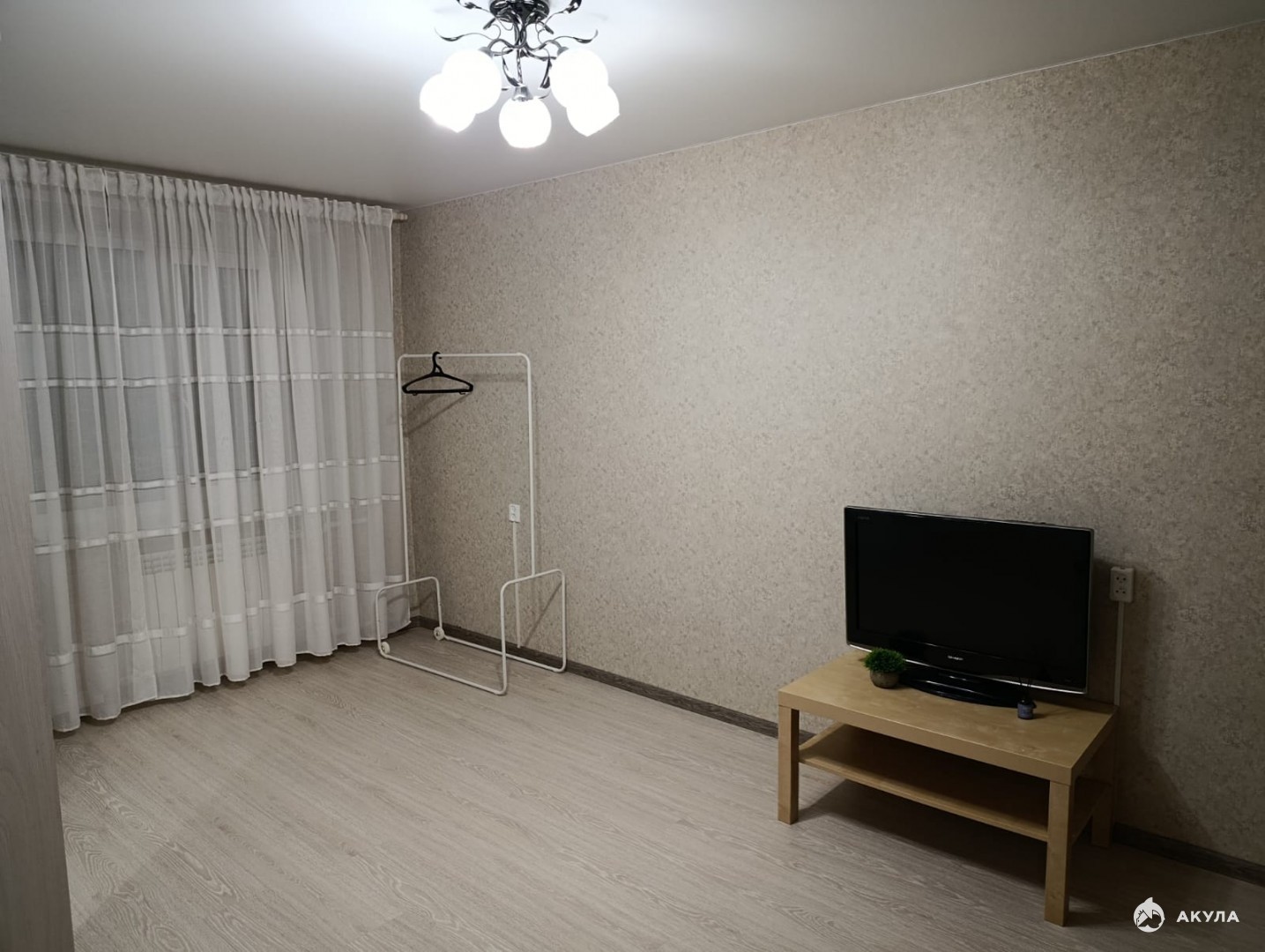 Комната : Уютный, новый двухспальный диван , вместительный шкаф для хранения вещей, камод, напольная вешалка , телевизор .