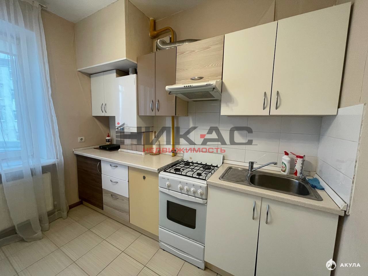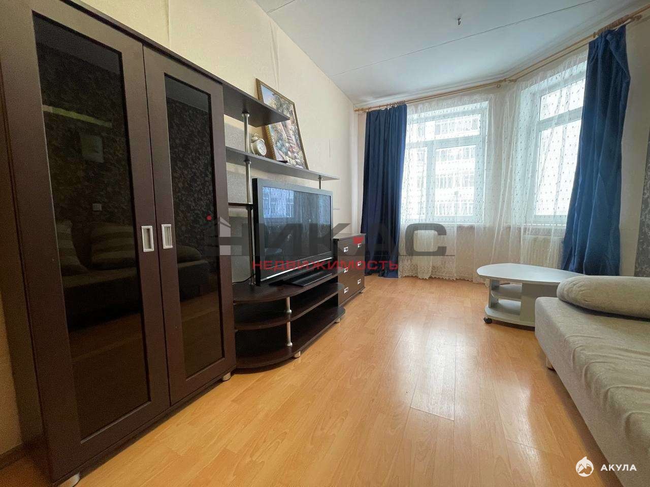 квартира оснащена люстрами, карнизами и шторами.