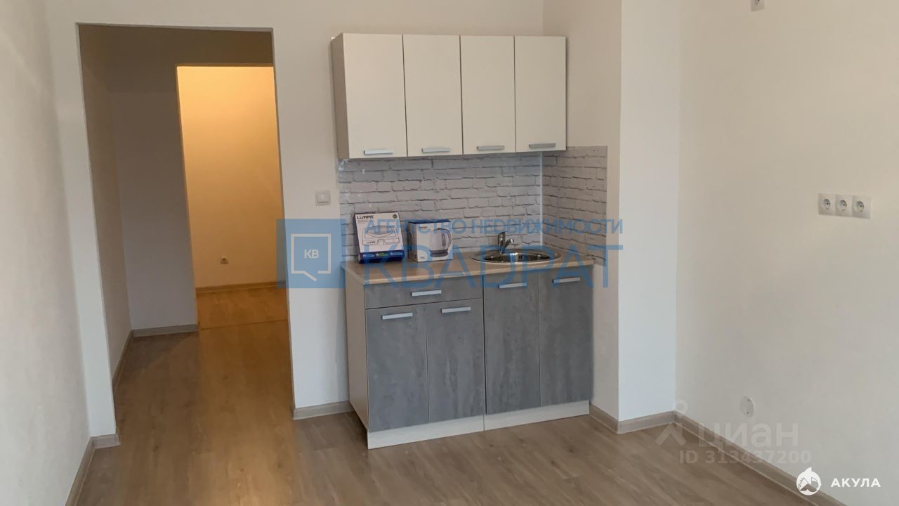 Студия в новом жилом комплексе "Адмирал", сдается на длительный срок, кухонный гарнитур, шторка в ванной, квартира чистая, ремонт от застройщика.