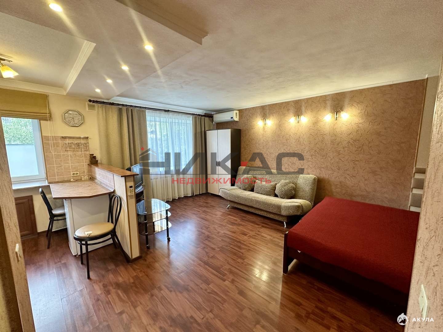 Квартира находится в идеальном состоянии. Современный качественный ремонт. Есть все необходимое для проживания: кровать евро, раскладывающийся диван, телевизор, шкаф для вещей, журнальный столик. Кухонный гарнитур в отличном состоянии, небольшая барная стойка, холодильник, стиральная машина, кондиционер. В квартире много больших зеркал. Ванна в светлом кафеле. Окна ПВХ, полы ламинат. Так же стоят двойные входные двери. Квартира не угловая, очень теплая, уютная и светлая.