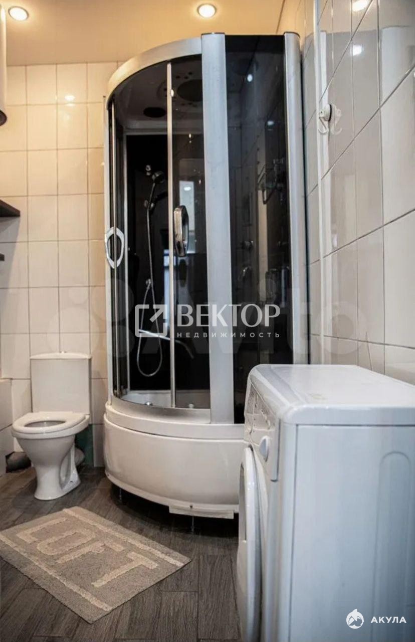Санузел оснащён удобной душевой кабиной, обеспечивая комфортные условия гигиены. Дополнительно установлена современная стиральная машина.
