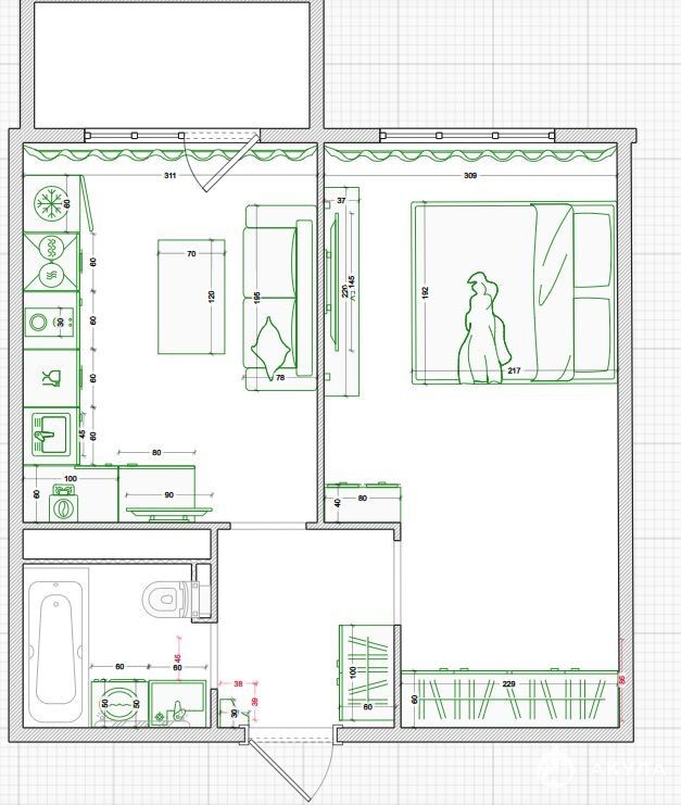 - Площадь кухни