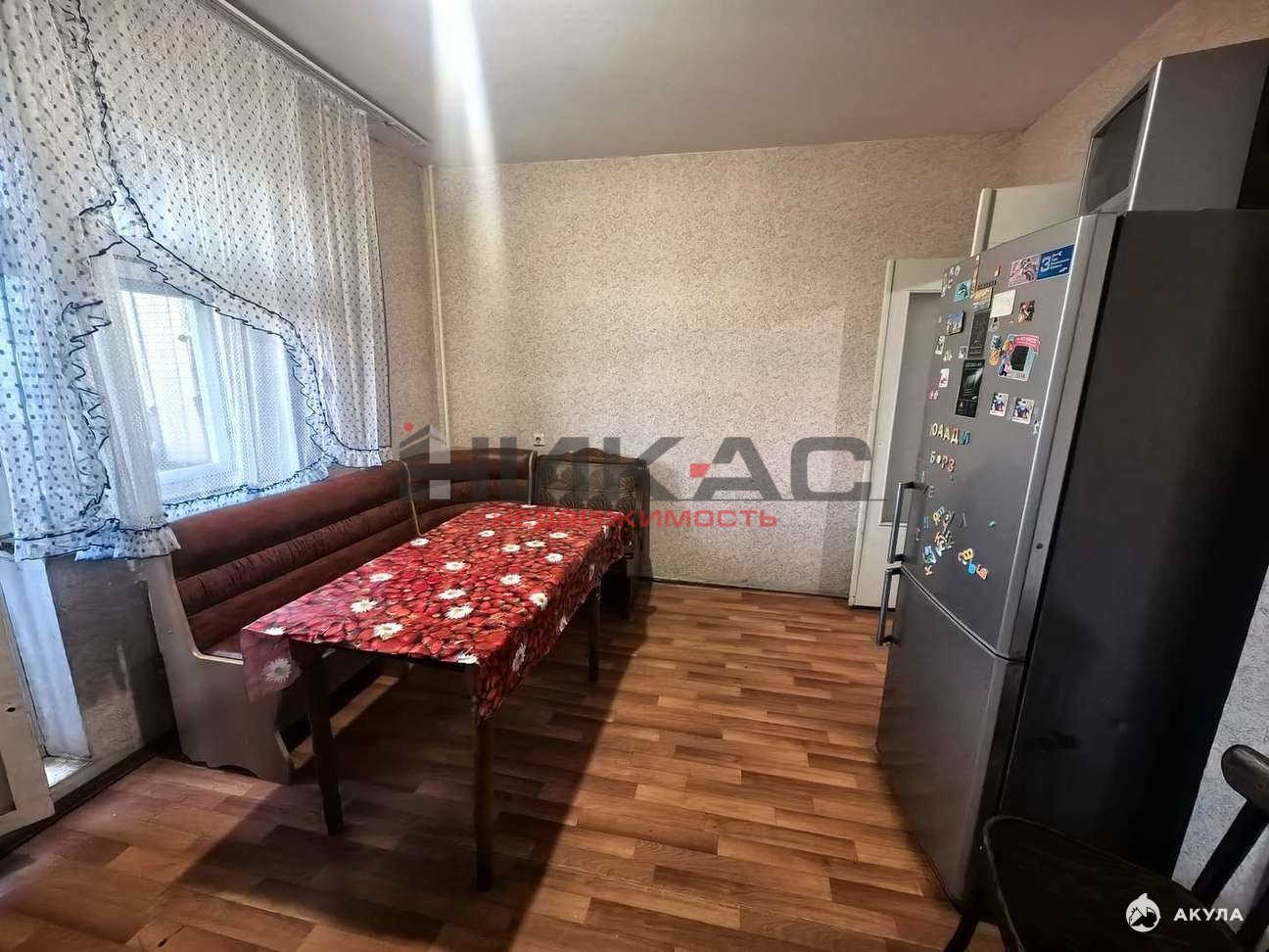 Общая площадь квартиры — 60 квадратных метров, из них 40 квадратных метров — жилая площадь, а 14 квадратных метров занимает кухня.