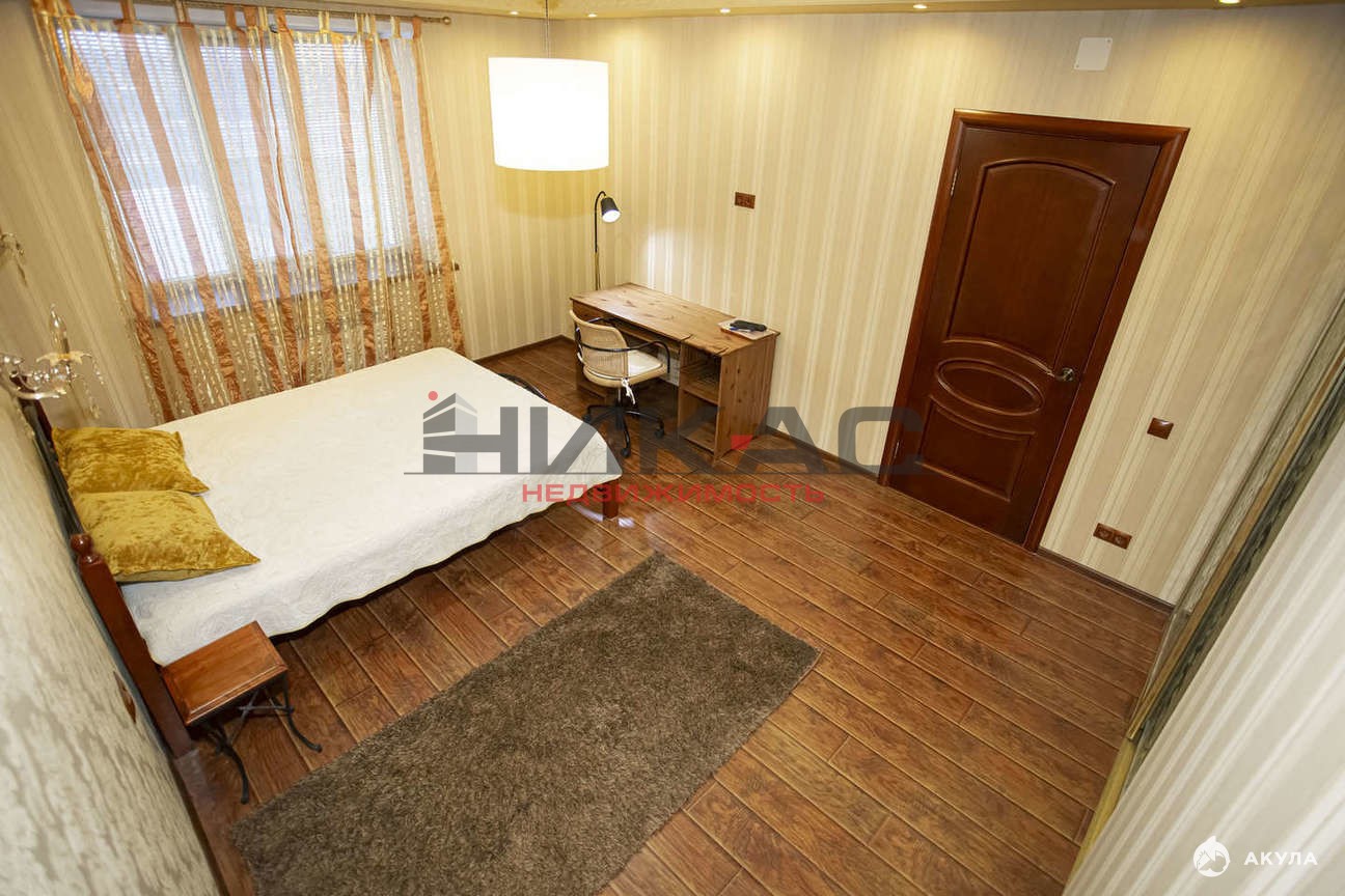 Планировка: изолированная спальня, гостиная, большая кухня с обеденной зоной, просторный холл и сан. узел.