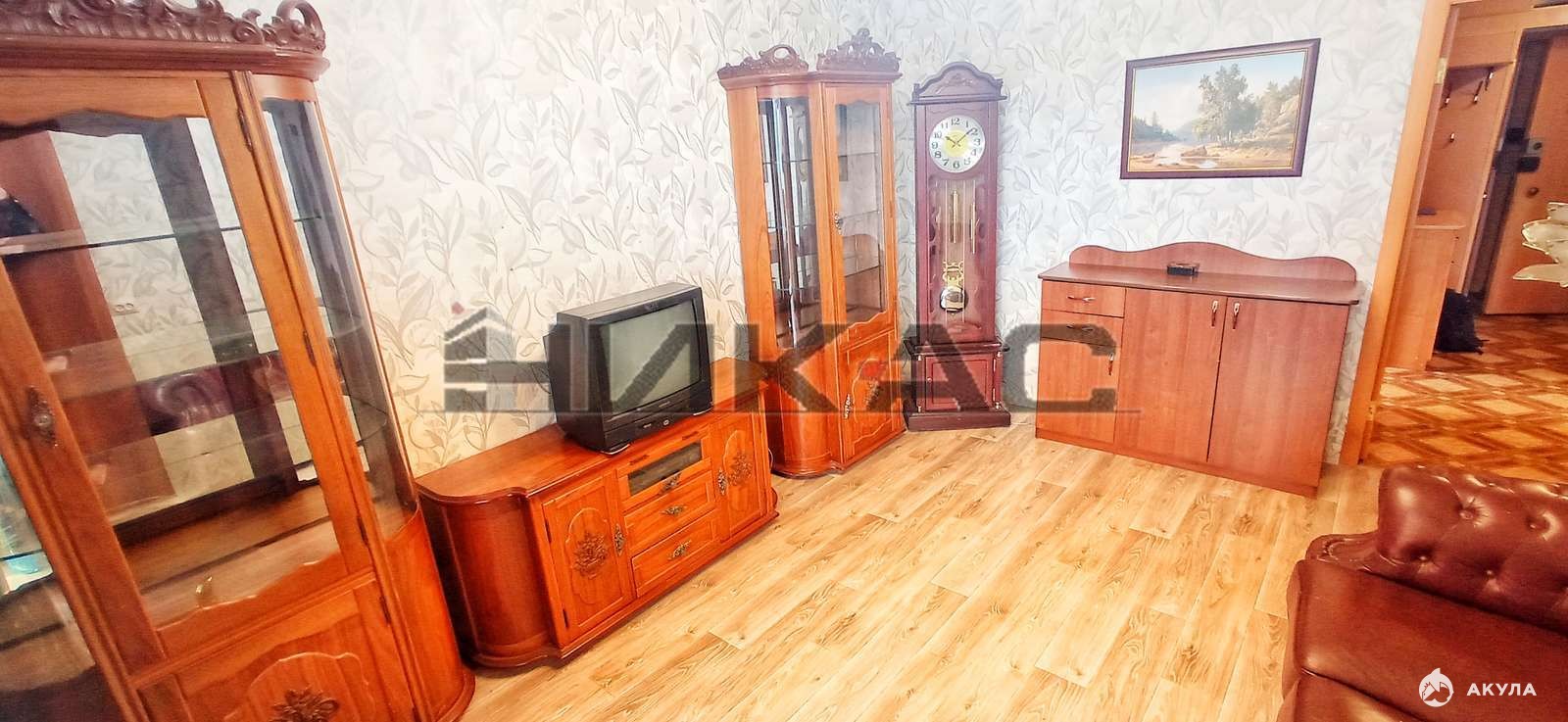 В квартире имеется все необходимое для проживания: диван, тумба под ТВ, шкафы для вещей, кровать 2-х спальная, обеденная зона, холодильник, стиральная машина.