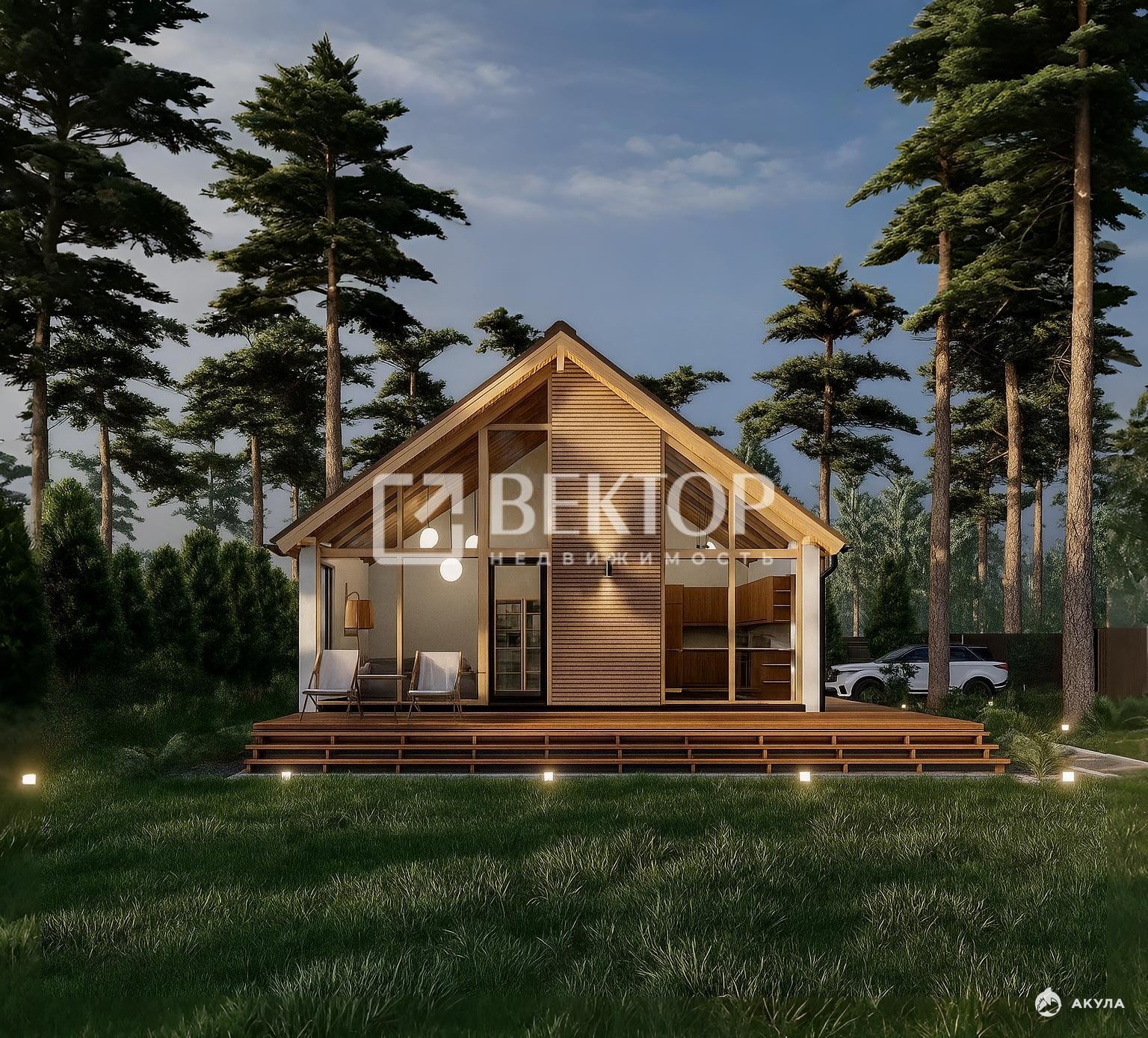 - Предлагаем вам каркасный дом с панорамным остеклением, просторной гостиной и тремя уютными спальнями.