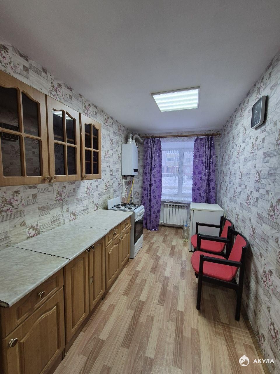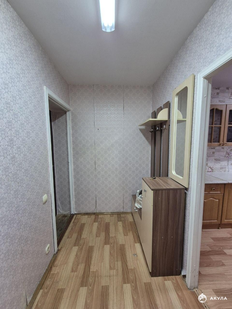 Общая площадь: 34 кв. м., кухня 8 кв. м., сан. узел.-совмещённый. Есть газовая плита, мебель, что на фото( шкаф, прихожая). Холодильник.