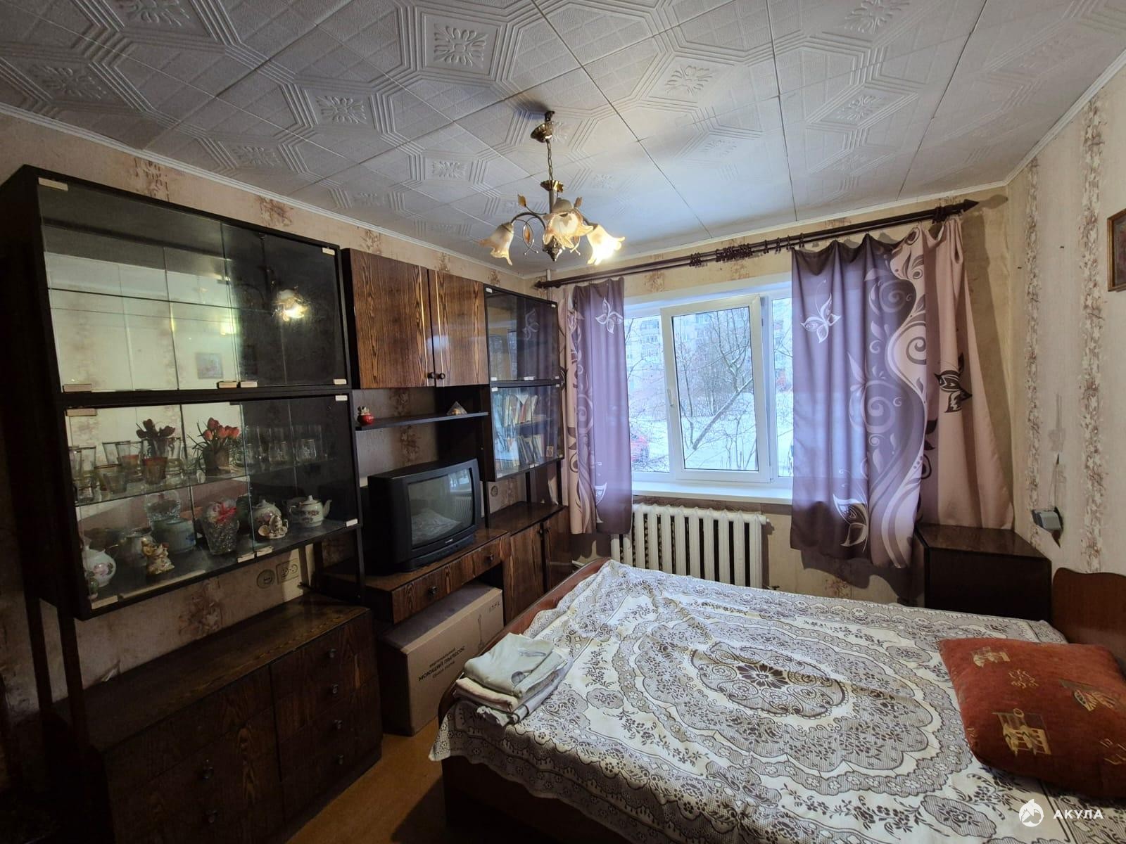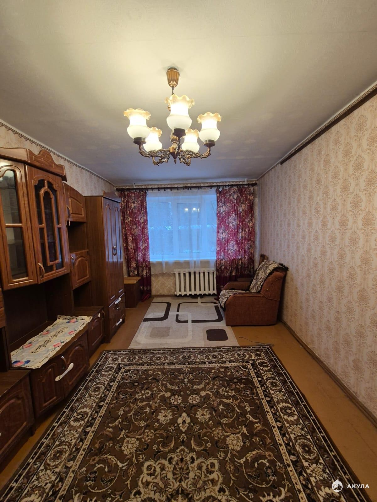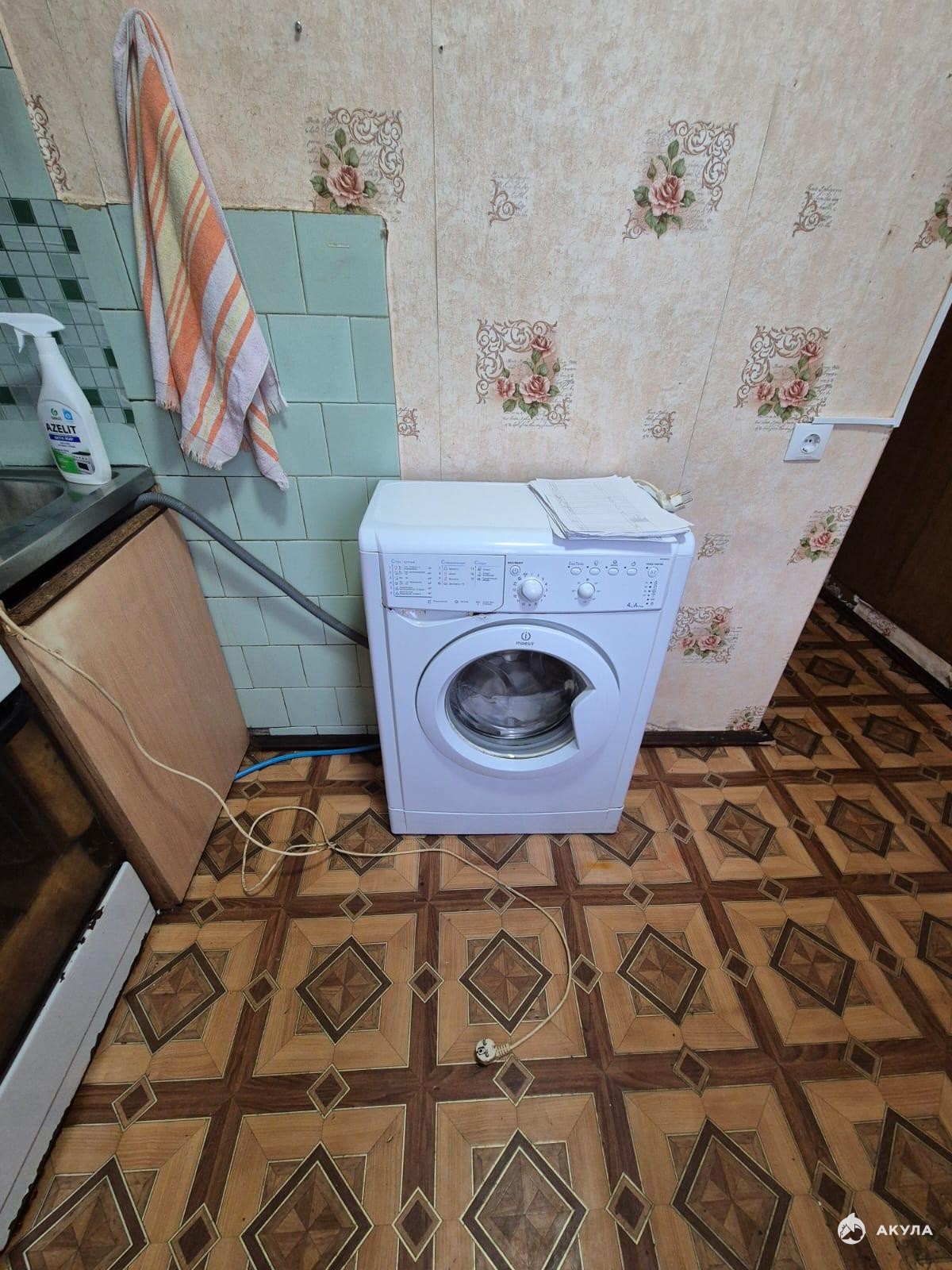 Общая площадь: 44 кв. м., кухня 6 кв. м., сан. узел.раздельный. Есть газовая плита, кухонный гарнитур, стол со стульями на кухне, стиральная машина, холодильник, кровать, шкафы, стенка, кровать.