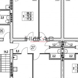 id:358. Трехкомнатная квартира 77.6 кв.м. в центре города. Эта квартира состоит из преимуществ: - раздельный сан.узел; - отдельное кладовое помещение - гардеробная с мокрой точкой; - не угловая тёплая квартира; - распашная планировка с возможностью проветривания; - большая...